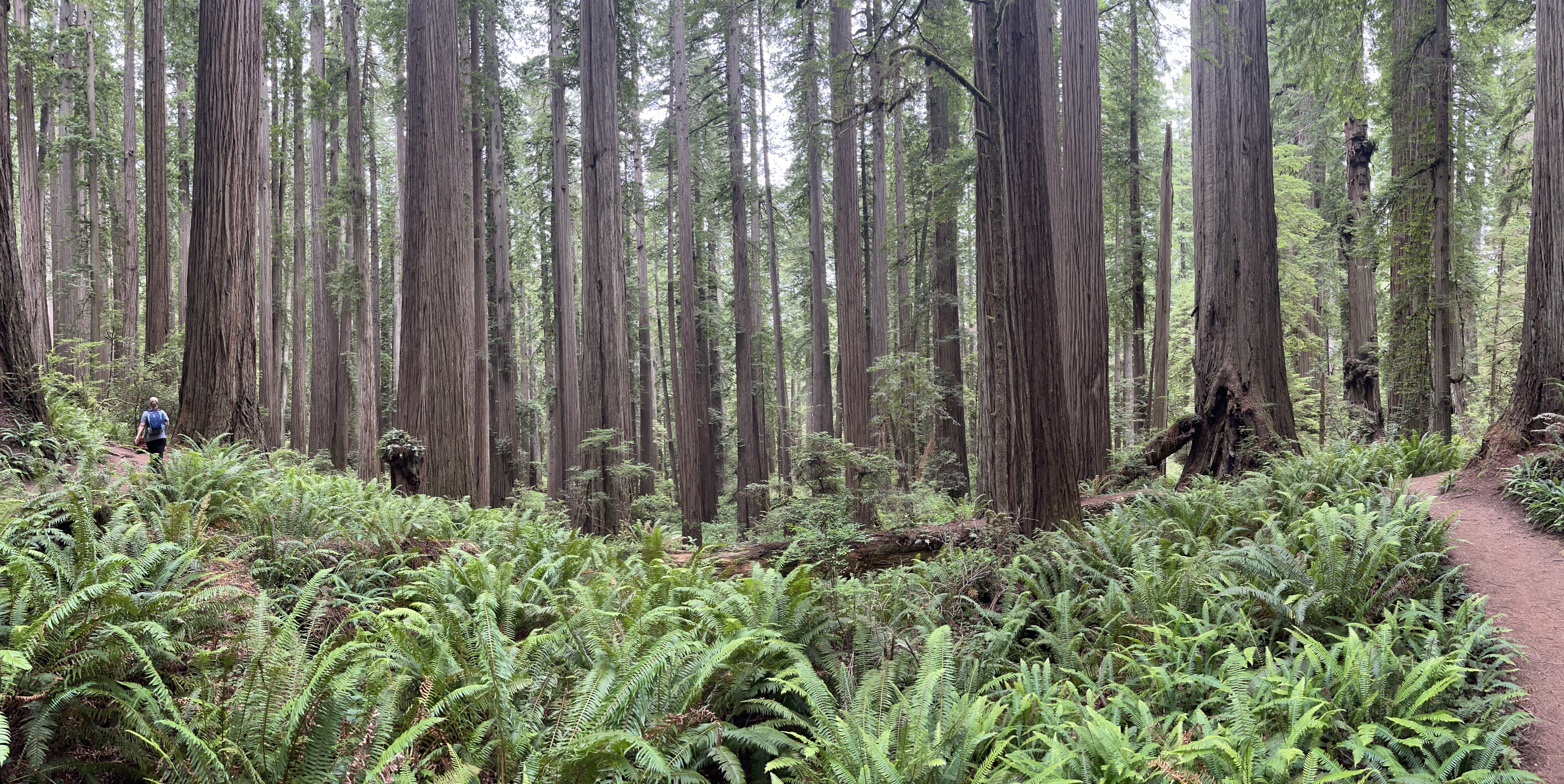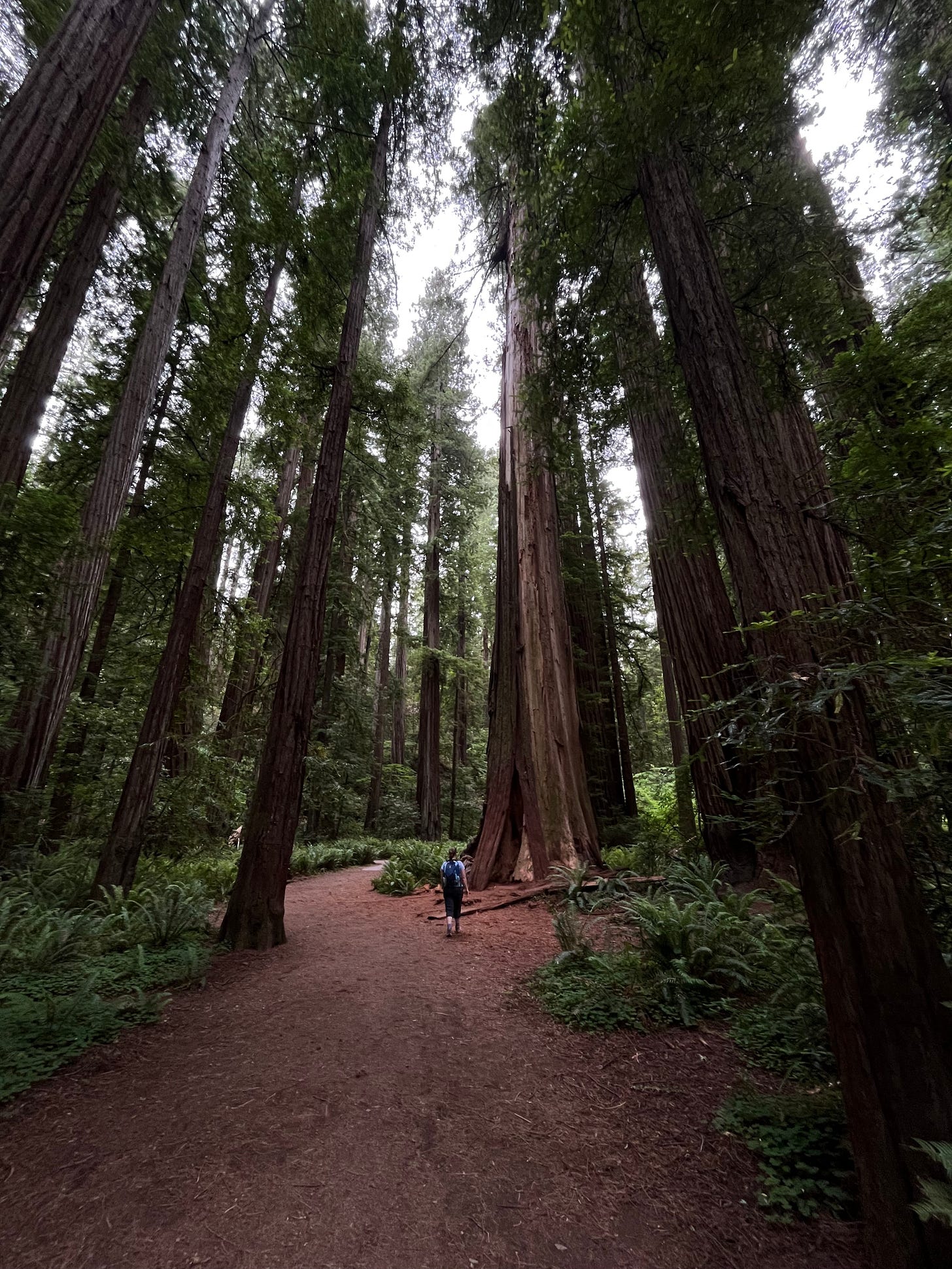 The next morning we had breakfast at a little restaurant just a short walk down the road from our motel. Then we packed water and some snacks and set off for our first trek through the redwoods. We did the Mill Creek trail that was supposed to take us through the Grove of Giants. Unfortunately, Grove of Giants was closed due to weather, but we still had a fabulous walk through the giants that were accessible.