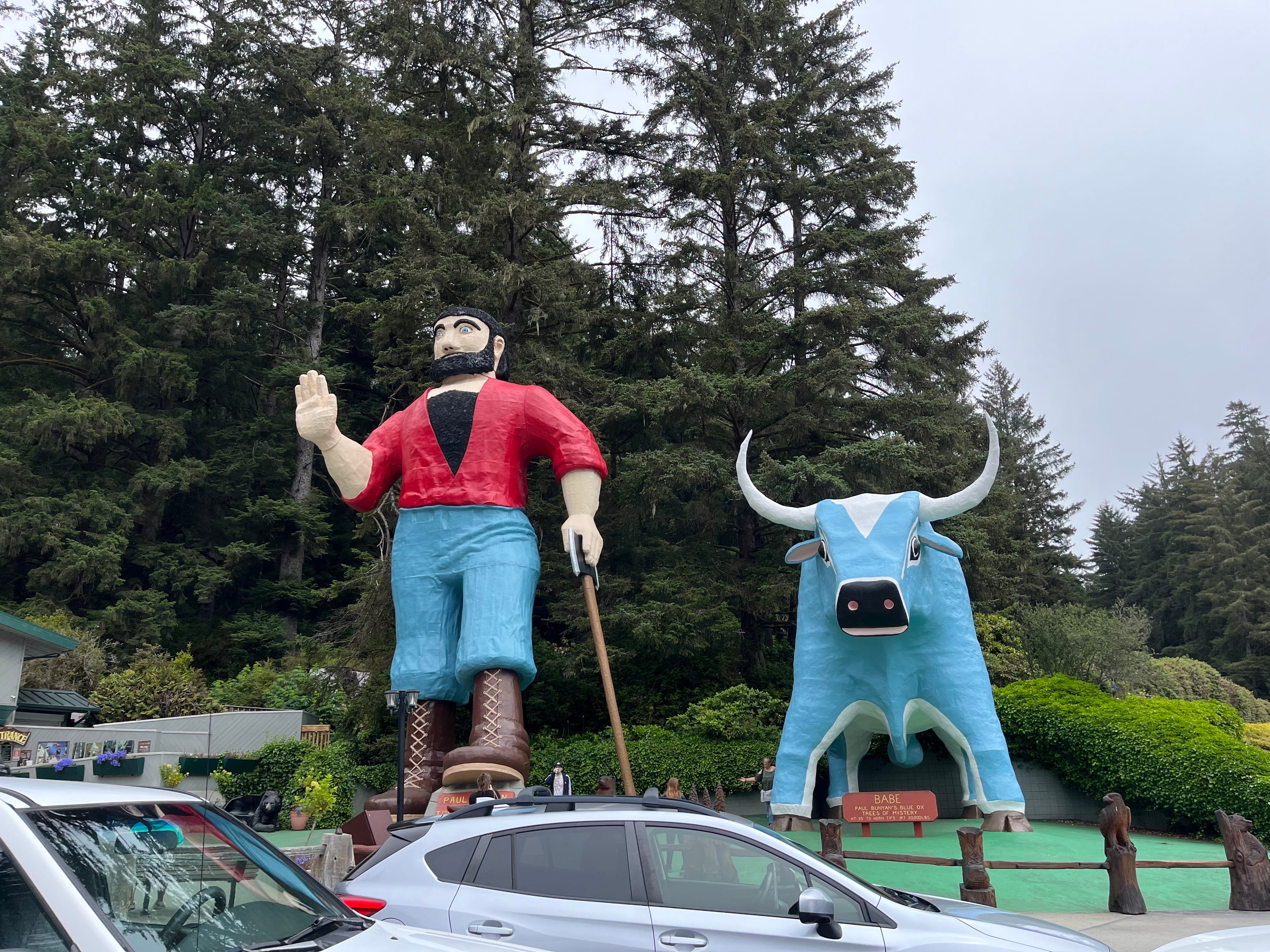 Our next day was a bit of a tourist trap. After spending about a half hour or so reading at a beach that was on our way, we went to the Trees of Mystery in Klamath, CA. Its most redeeming quality was the giant robot Paul Bunyan and Babe the Blue Ox statues in the parking lot.