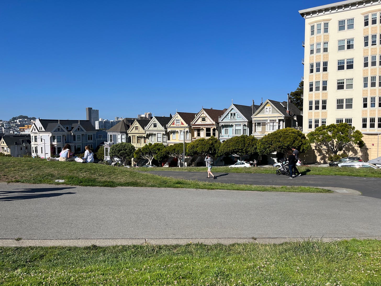 Then we drove to the Painted Ladies, the only other tourist attraction I knew of in the city. We sat in the park across the street, set up my picnic blanket, and sat reading (lots of reading this week!) until it got too chilly and we drove to our hotel. It was our last night together. We spent it in the hotel room watching Celebrity Family Feud. And it was perfect.